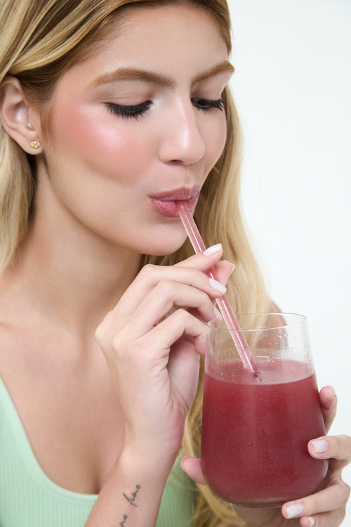 Ingredientes: Polidextrose, Inulina obtica da raiz de chicória (Cichorium intybus), Concentrado de maçã em pó, Couve em pó, Psyllium (Plantago ovatae), Hibisco em pó, Laranja Doce em pó, Gora acácia (Acacia senegal L), Gora Agar, Fibra de beterraba Romã em pó, Extrato de Cranberry em pó, Acerola em pó, Polpa de Limão em pó, Linhaça dourada em pó, Melancia em pó, Laranja Amarga em pó, Chá verde em pó, Bitartarato de Colina, Bisglicinato de Magnésio (Magnésio), Guaraná em pó (Paulinia cupana), Matcha em pó, Café verde em pó, Acido ascórbico (Vitamina C), Hortelã em pó, Gengibre em pó, Niacinamida (Vitamina B3), Acetato de DL-alfa-tocoferol (Vitamina E), Biglicinato de Zinco (Zinco), Cloridrato de piridoxina (Vitamina B6), Cloridrato de tiamina (Vitamina B1), Riboflavina (Vitamina B2), Ácido fólico (Vitamina B9), Picolinato de Cromo (Cromo), Selenito de Sódio (Selênio), D-biotina (Biotina) Meticobalamina (Vitamina B12). Aromatizante idêntico ao natural de pitaia e aromatizante idêntico ao natural de morango. Acidulante ácido citrico. Corante natural carmim (INS120). Stevia. Antiumectante dióxido de silicio.